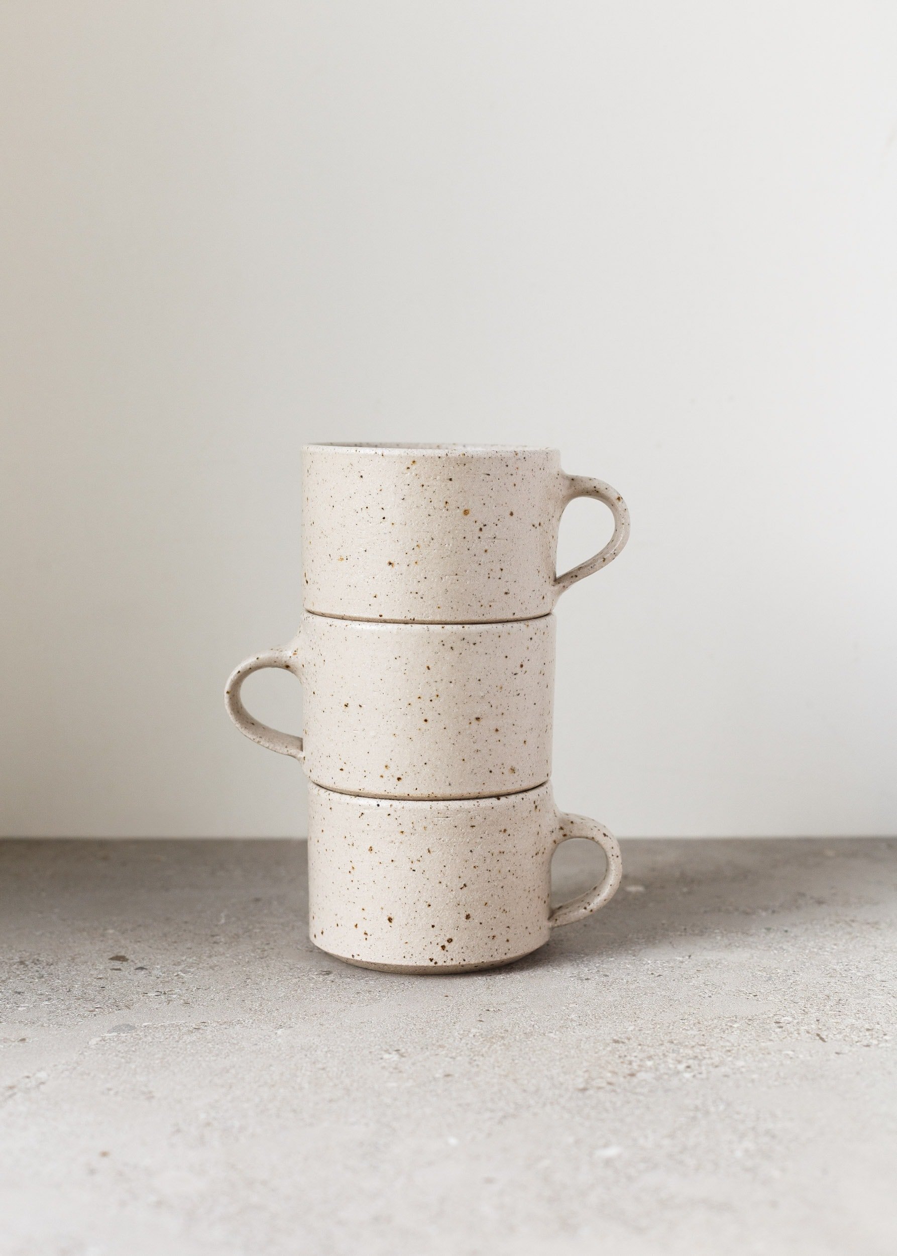 Made using slightly grogged stoneware clay with iron speckles and glazed in a satin that shows off the speckles in the clay.